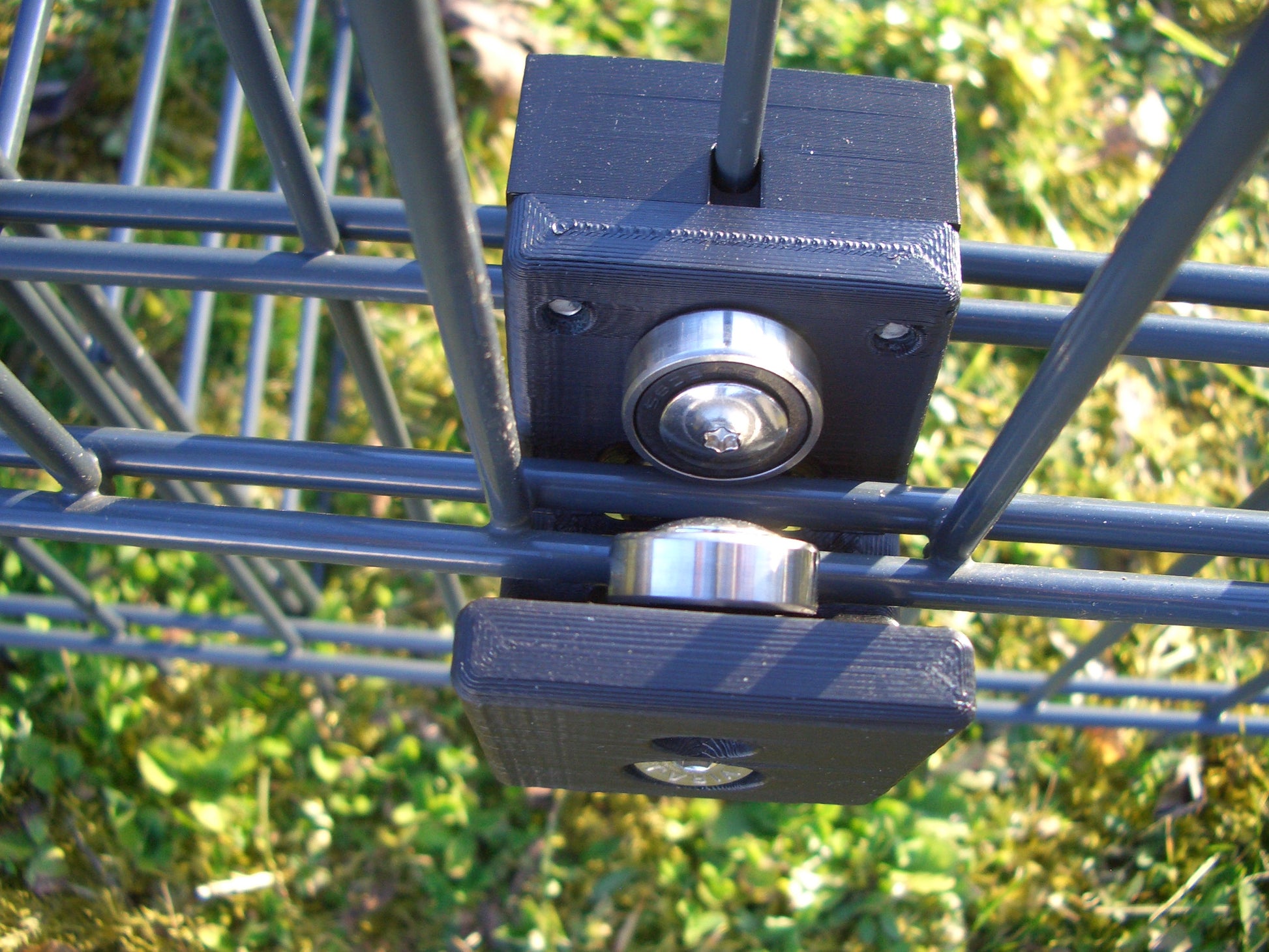 Im Inneren des Schiebebeschlages befinden sich jeweils vier Kugellager. Die Doppelstabmatte kann ohne nennenswerten Wiederstand durch das Schiebesegment gleiten.
